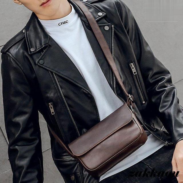 ショルダーバッグ メンズ オシャレ シンプル ミニショルダー カバン 斜めがけ カジュアル 小さいバッグ 斜め掛け PUレザー