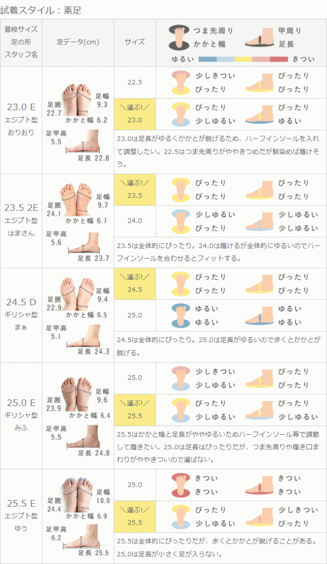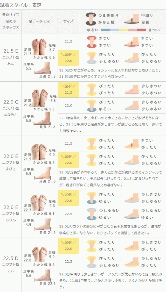※足の形には個人差があります。スタッフ試着感想は参考程度にお考え下さい。