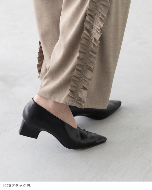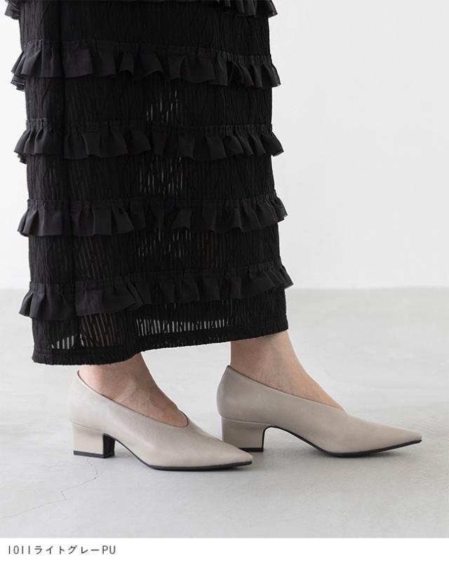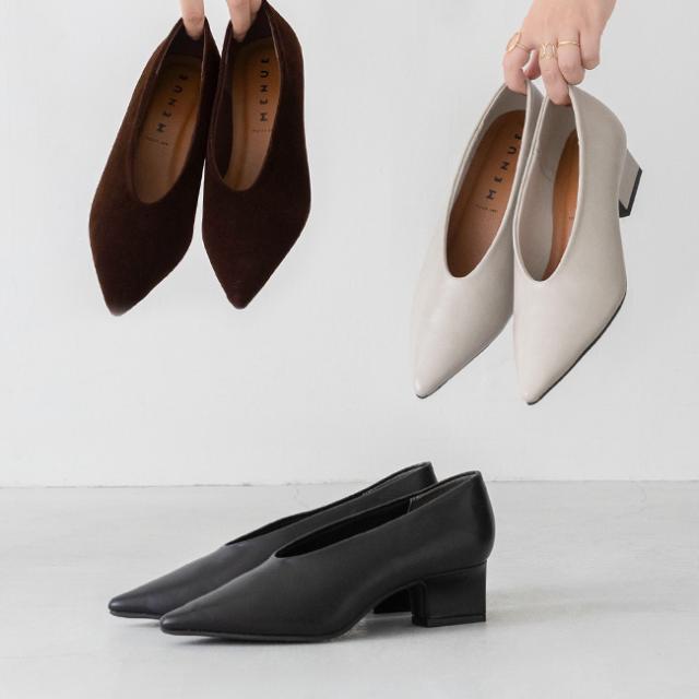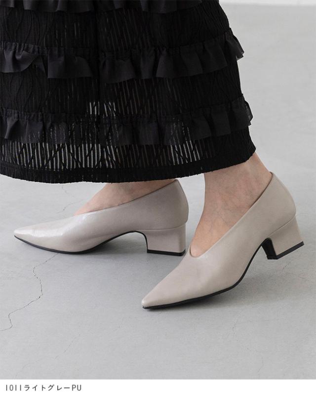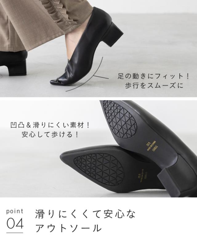 この深めの履き口が、パンプス全体のデザインにさり気ないトレンド感をプラス。シンプルな中にも洗練された印象を与えます。