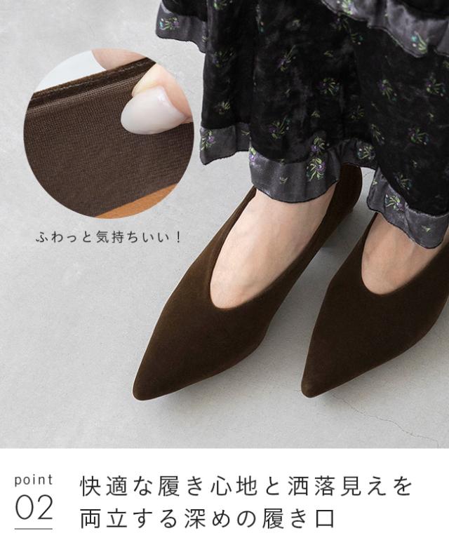 素足はもちろん、靴下と合わせても可愛いデザイン。シンプルなパンプスだからこそ、様々な靴下との組み合わせを楽しんで、あなたらしいスタイリングを見つけてください。