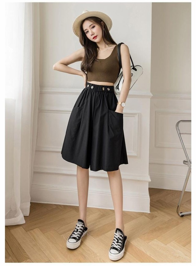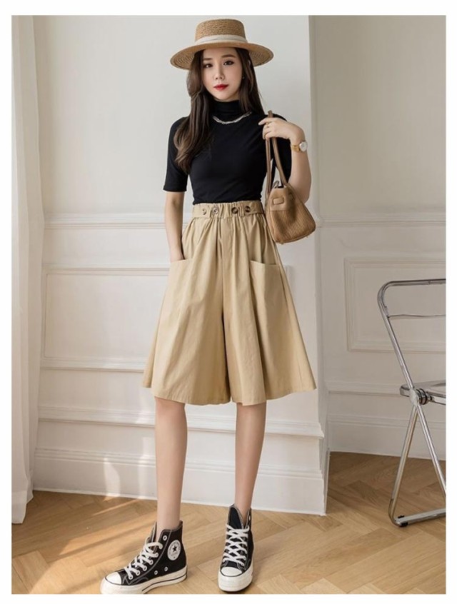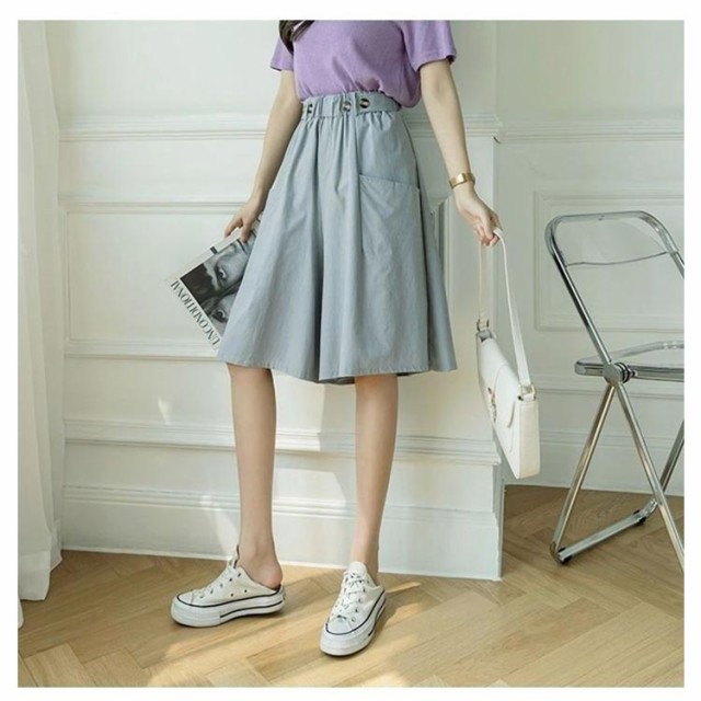 送料無料 ハーフパンツ レディース スカート風 ショートパンツ 薄手 膝丈 五分丈 キュロットパンツ ガウチョパンツ スカーチョ キュロットスカート ショート丈 ゆったり Aライン ボトムス 春 夏 春夏 ハイウエスト ウエストゴム 通勤 通学 カジュアル キレイめ