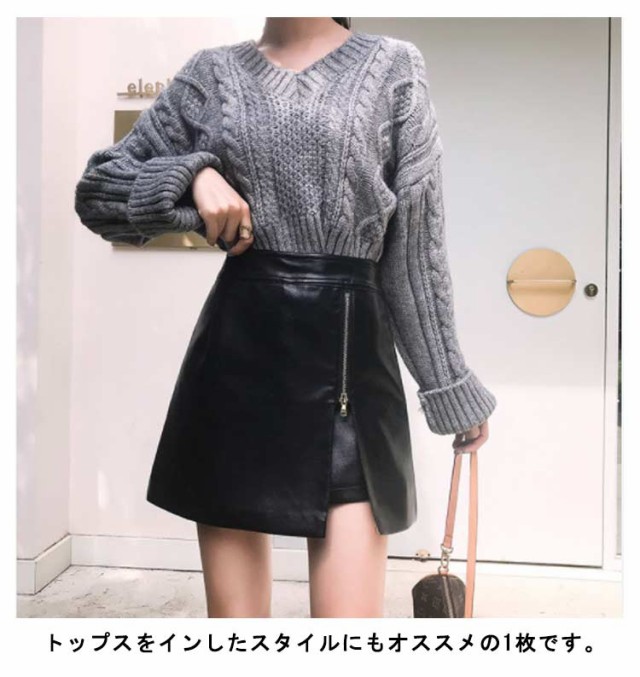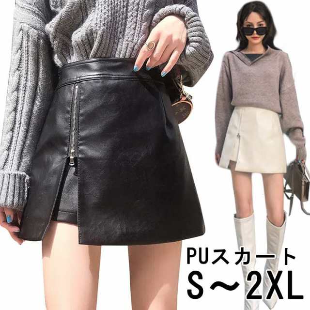 タイトスカート ジップアップ レディース インナーパンツ付き フェイクレザー 秋冬 ミニスカート 台形スカート ハイウエスト ボトムス ブラック ホワイト送料無料 ジップアップ