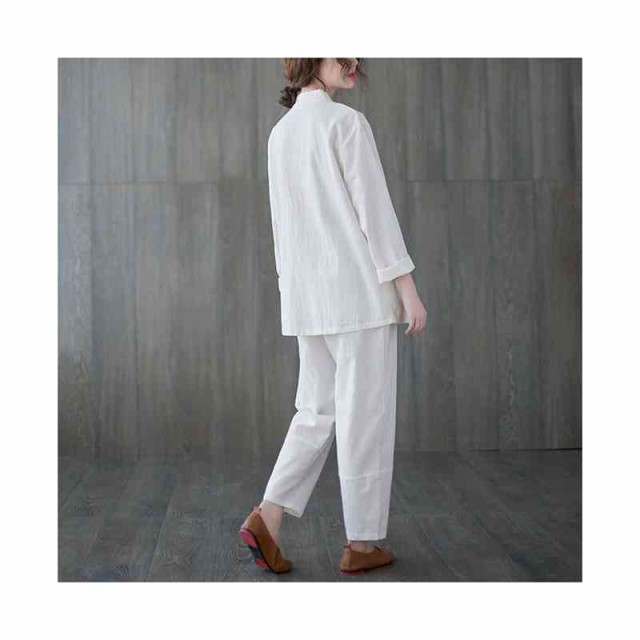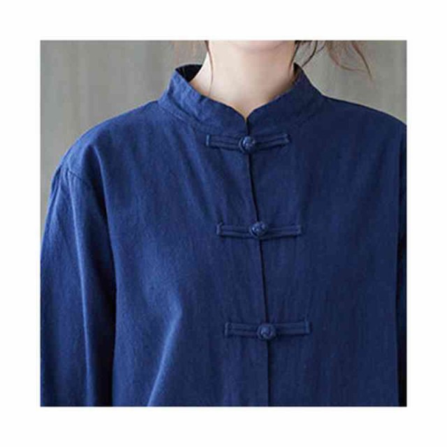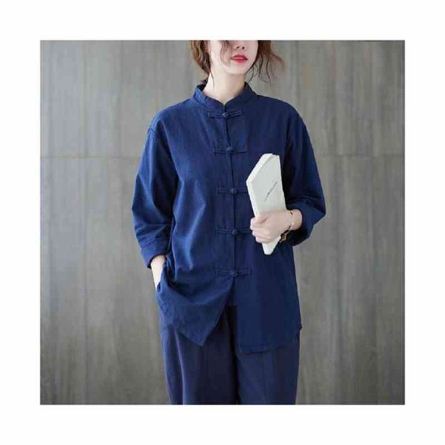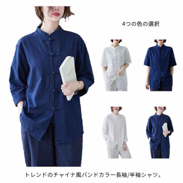 チャイナ風シャツ レディース 長袖 ブラウス トップス シャツブラウス チャイナブラウス チャイナボタン 立ち襟 綿麻 羽織り ゆったり カジュアル おしゃれ シンプル 無地