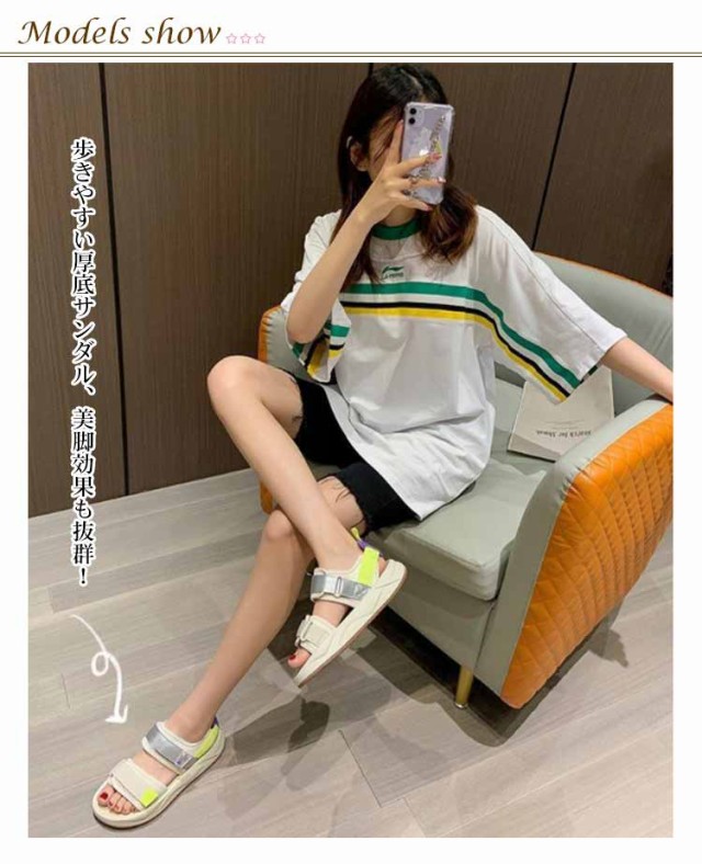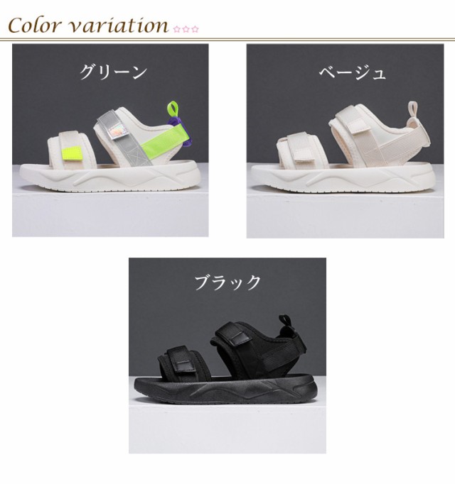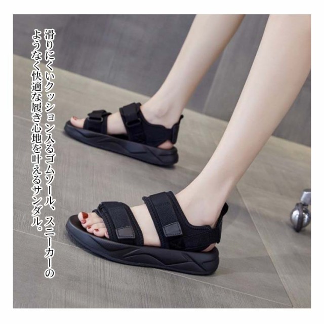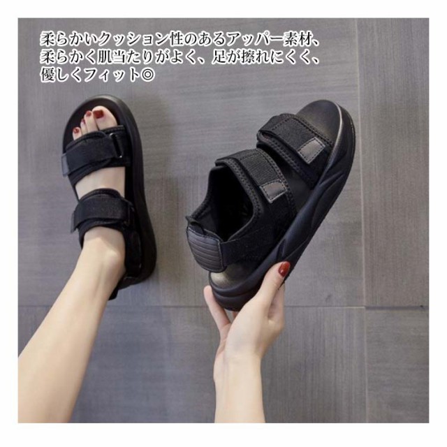 | 快適な履き心地を実現するスポーツサンダル。 滑りにくいクッション入るゴムソール、スニーカーのようなく快適な履き心地を叶えるサンダル。 甲の高さやワイズに合わせて調節できる面ファスナー式ベルト、自分の足にぴったりフィットし、極上の履き心地を実現。 柔らかいクッション性のあるアッパー素材、柔らかく肌当たりがよく、足が擦れにくく、優しくフィット◎ 歩きやすい厚底サンダル、美脚効果も抜群! | |