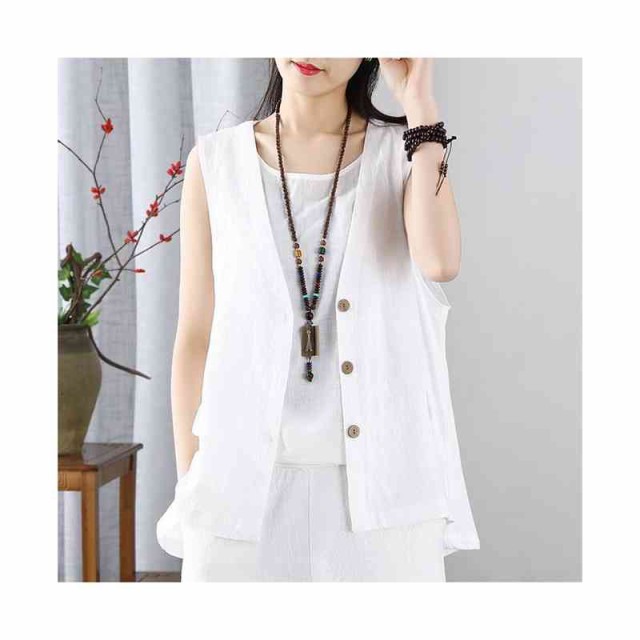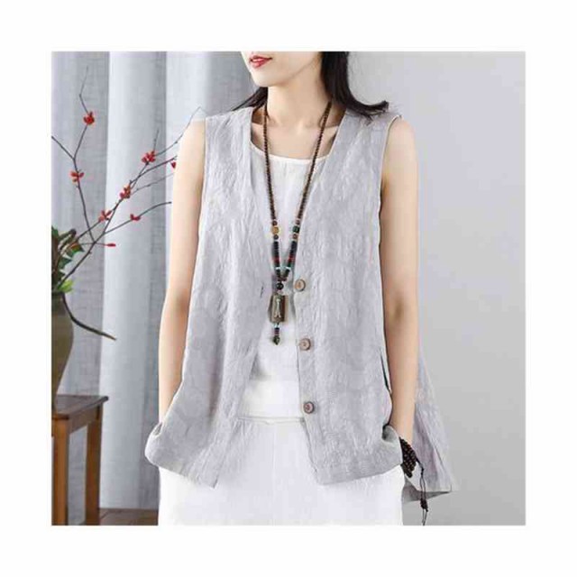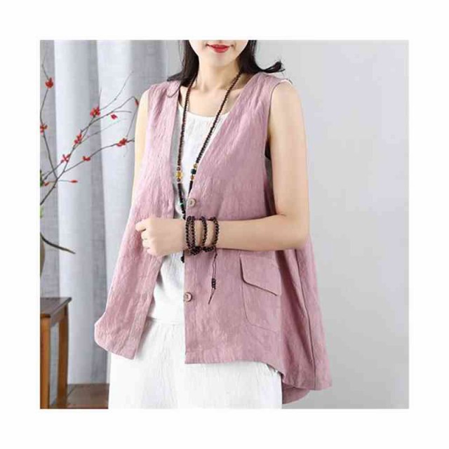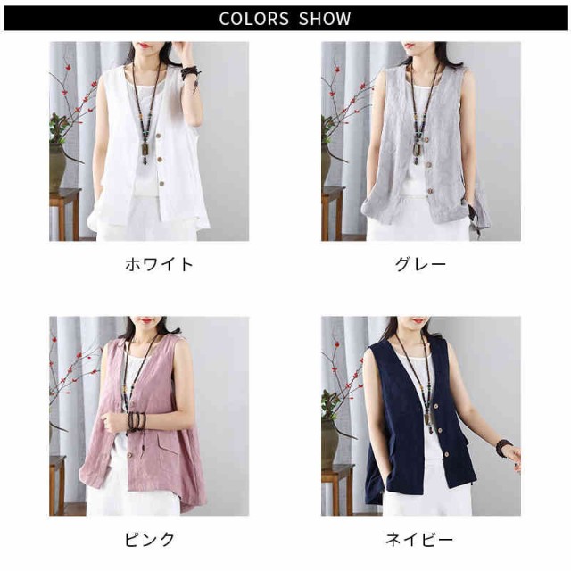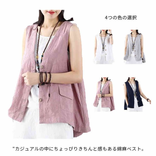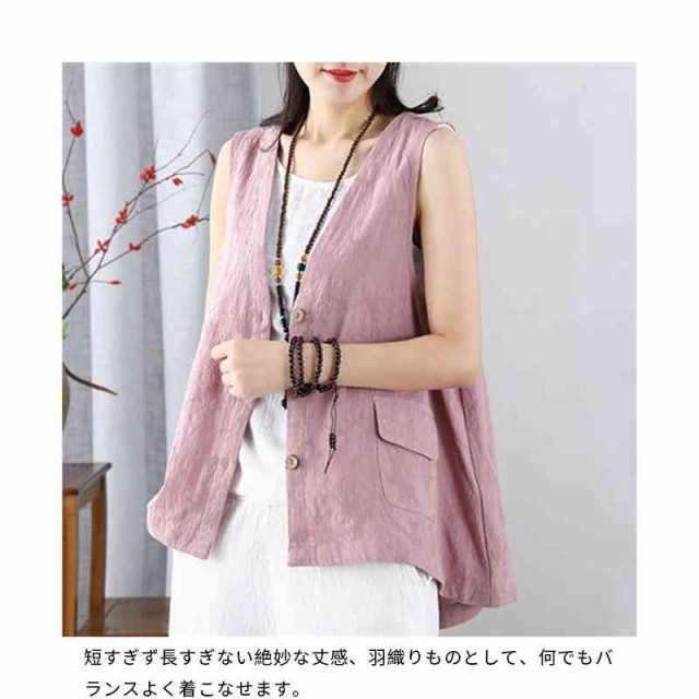 ジレ ベスト レディース ノースリーブ リネン 綿麻 トップス 春 秋 夏 大きいサイズ レイヤード 大人可愛い ゆったり おしゃれ シンプル ナチュラル