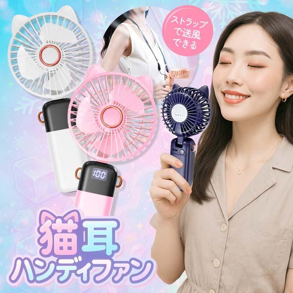 | 首かけストラップ付属 猫耳ハンディファン |