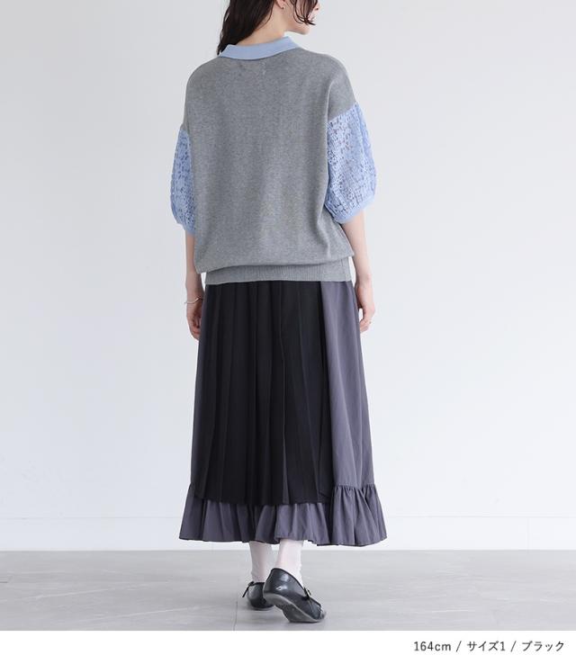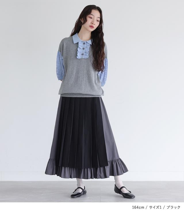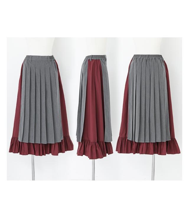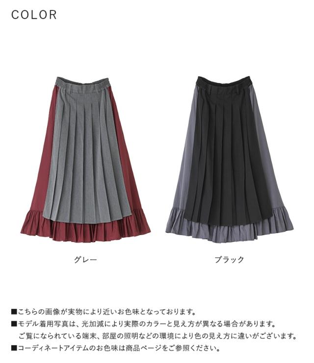 23日最大1200円クーポン 『異素材プリーツスカート』【メール便不可】【30】[スカート レディース ボトムス ロングスカート プリーツスカート 異素材 ティアード 配色 ウエストゴム マキシ丈 春 夏 秋 冬]