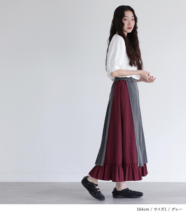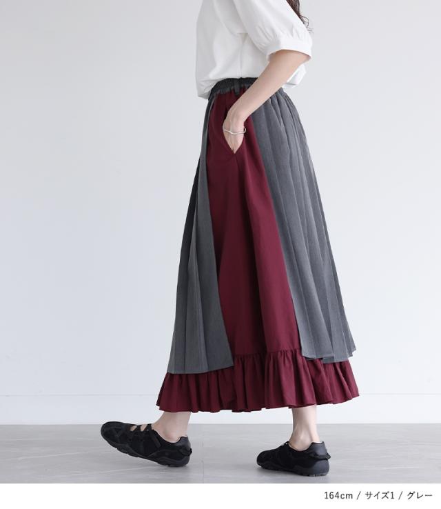 スカート レディース ボトムス ロングスカート プリーツスカート 異素材 ティアード 配色 ウエストゴム マキシ丈 春 夏 秋 冬 【TP】 マキシスカート ティアードスカート 個性派スカート ロング丈 Aライン プリーツ ベルトループ 切り替え スリット 無地 ツイル ナイロン 異素材MIX ポケット おうちで洗える オールシーズン カジュアル シンプル ナチュラル キレカジ フェミニン ガーリー ゆったり ゆる 楽ちん Sサイズ Mサイズ Lサイズ LLサイズ 3Lサイズ XLサイズ ぽっちゃり 体型カバー 大きいサイズ プラスサイズ 10代 20代 30代 40代 50代 60代 低身長 高身長 女子会 オフィス 通勤 通学 お買い物 お出掛け 旅行 リゾート レジャー おしゃれ お洒落 トレンド 流行 somari imagination ソマリイマジネーション 可愛い系 大人女子 大人可愛い お洒落可愛い 大人カジュアル レトロ クラシカル 上品 きれいめ osharewalker オシャレウォーカー おしゃれうぉーかー グレー 灰色 ブラック 黒 バイカラー[ID]15bo03w