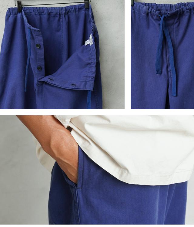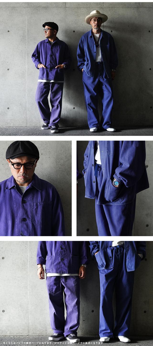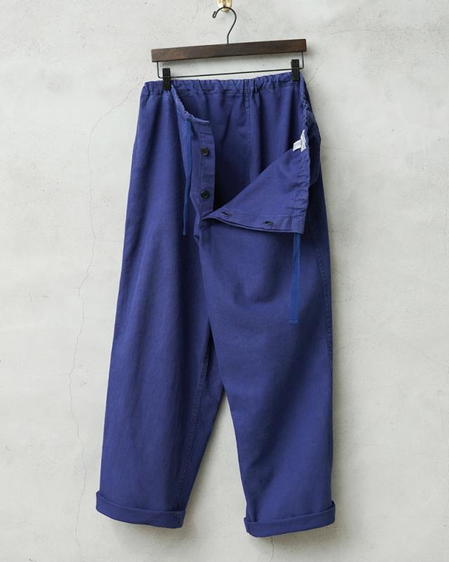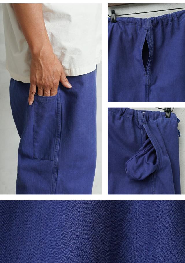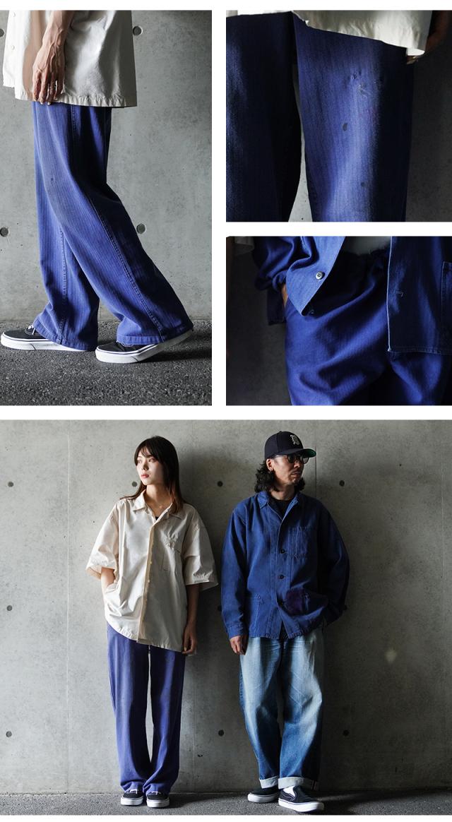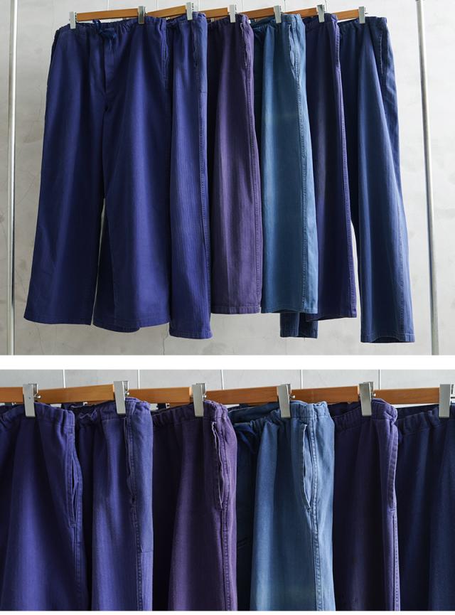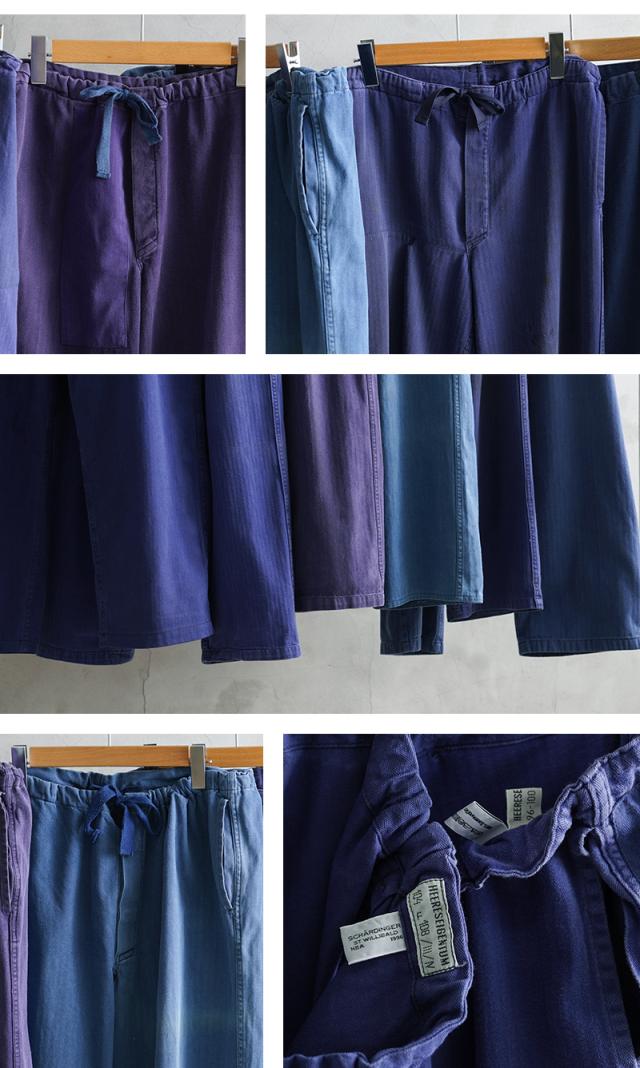へリンボーツイルの独特な生地感に、一枚一枚が異なる雰囲気のオーストリア軍のブルーワークパンツです。ヨーロッパ独特の鮮やかなブルーに目が惹かれます。