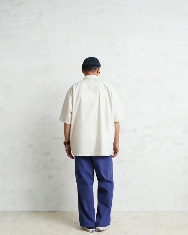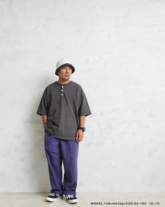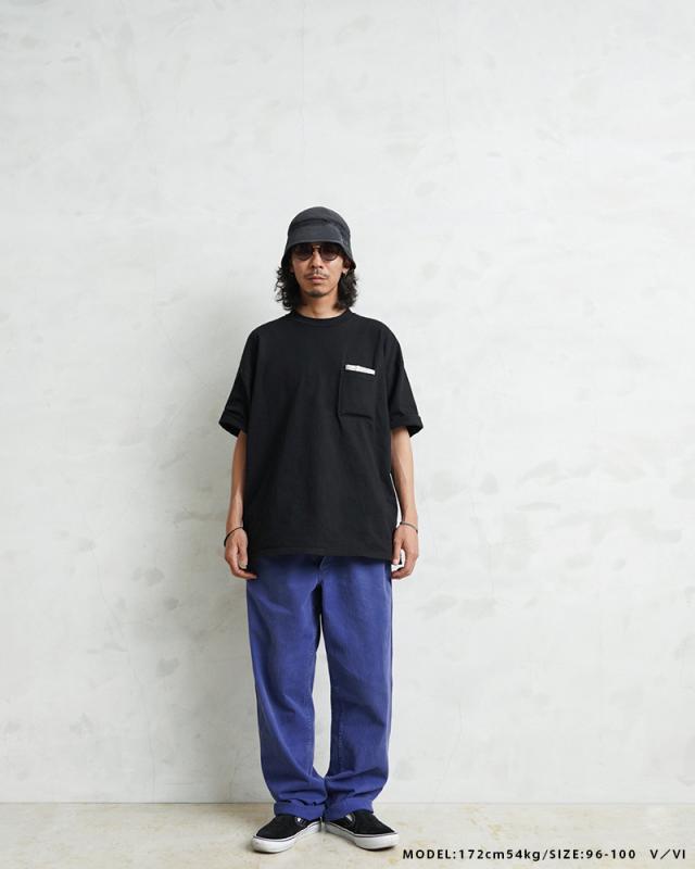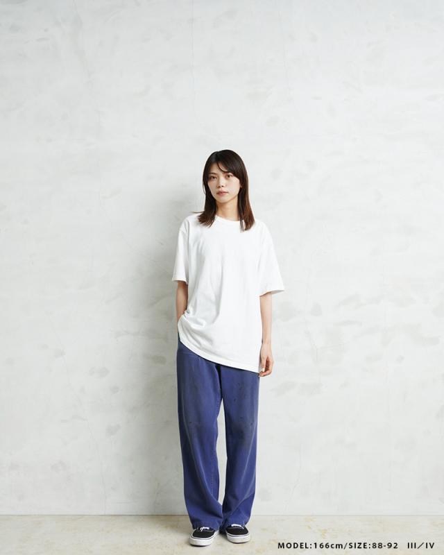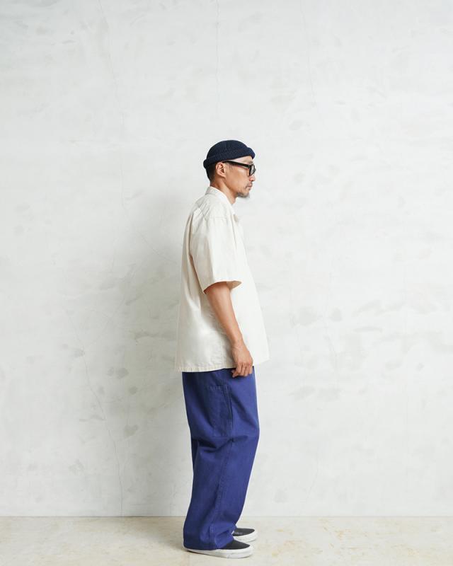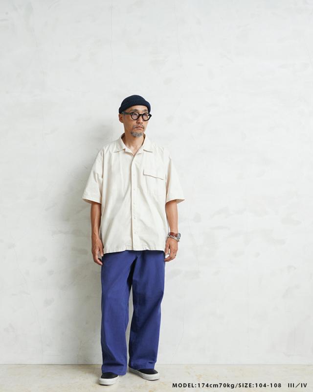 HBT(ヘリンボーンツイル)が使用されており、この生地特有の立体感や雰囲気の良さは着込む中であらわれてくるアタリやフェード感は着用していく中で楽しみの一つになります。生地感も肉厚過ぎず薄すぎない良いバランスに、無駄のないシンプルなデザインのパンツは年間を通して重宝します。