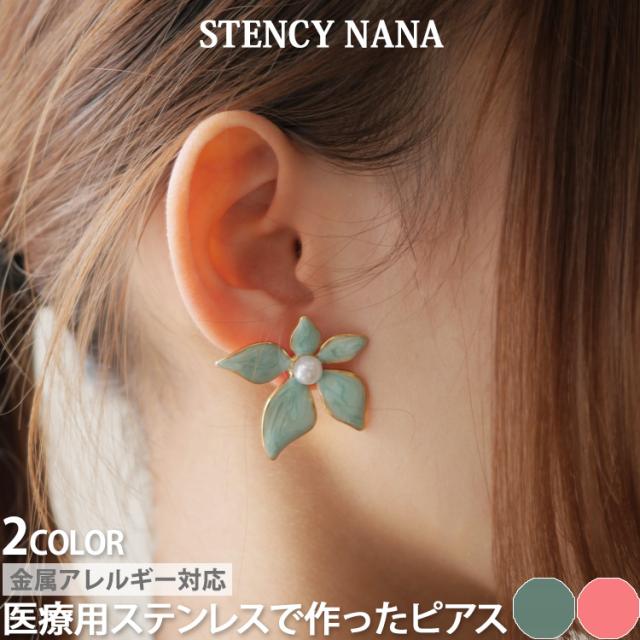 金属アレルギー対応 ステンレスピアス プチパールフラワーモチーフピアス セカンドピアス スタッドピアス 両耳用