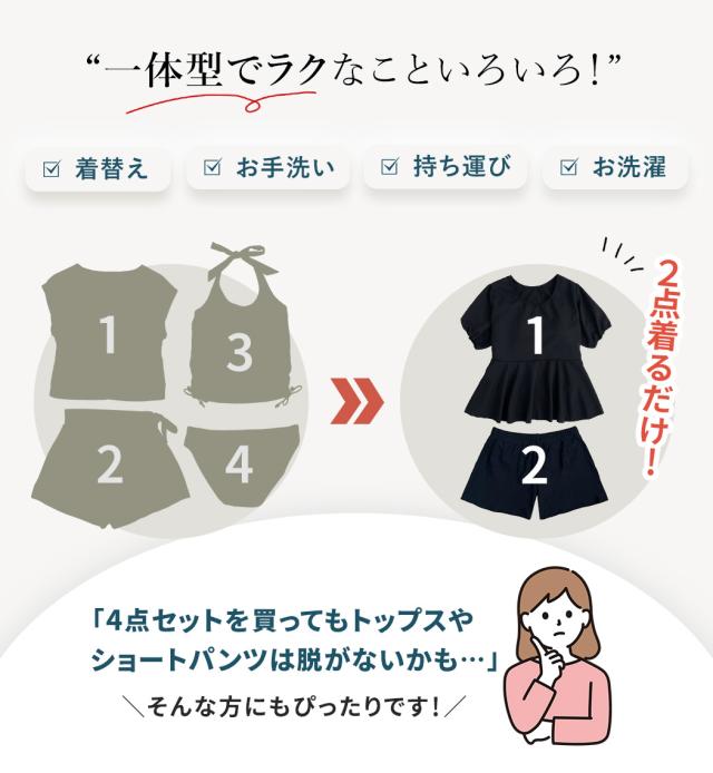 上下着るだけでOK!なインナー一体型水着。