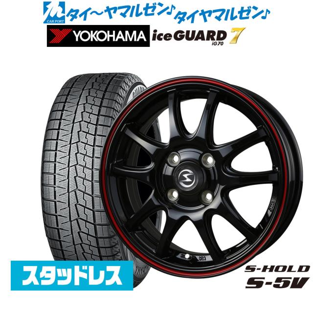 | ホイール 商品名:BADX エスホールド S-5V カラー:ブラック/レッドライン インチ:15インチ J数:4.5J PCDインセット:4穴100mm→+45 タイヤ 商品名:ヨコハマ ice GUARD アイスガード IG70 サイズ:165/55R15 75Q シーズン:スタッドレスタイヤ |