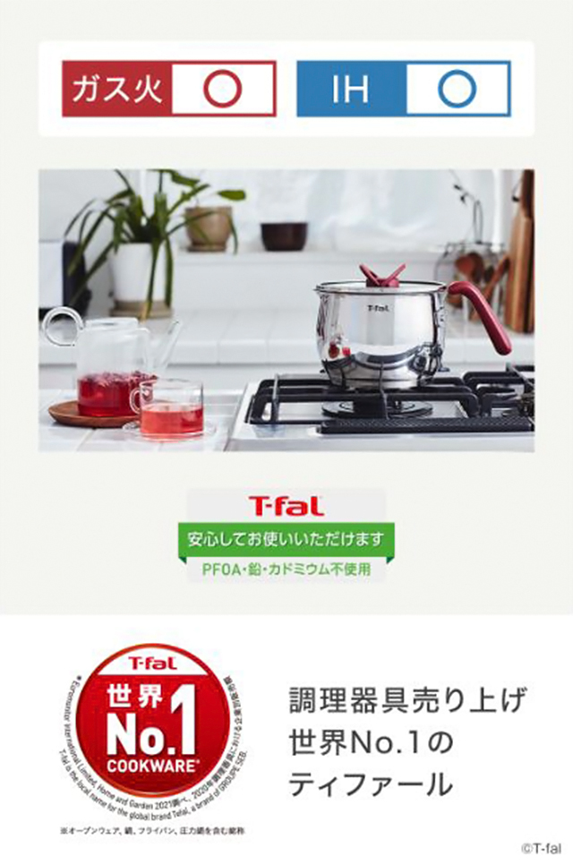 内側はチタン・インテンスコーティングを施し、使い始めのこびりつきにくさが長く続きます。食材を入れるベストなタイミングを教えてくれる「お知らせマーク」付き。IH(電磁調理器)・ガス火を含む、いずれの熱源にも使用できます。