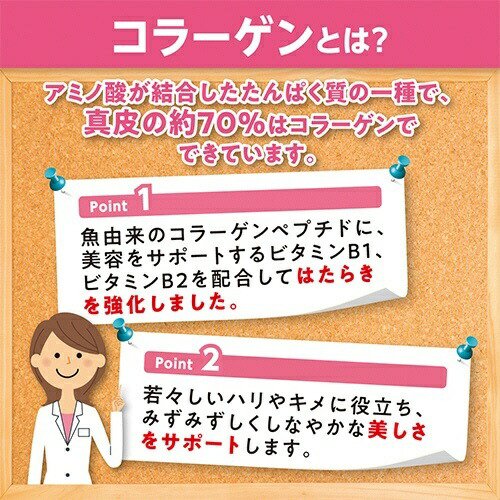●魚由来のコラーゲンペプチドに、美容をサポートするビタミンB1、B2を配合してはたらきを強化。若々しいハリやキメに役立ち、みずみずしくしなやかな美しさをサポートします。