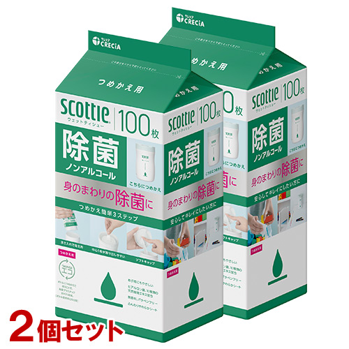 ウェットティッシュ スコッティ ウェットティシュー 除菌 ノンアルコール 詰替用100枚×2個セット scottie 日本製紙クレシア(Crecia)【送料込(北海道除く)】