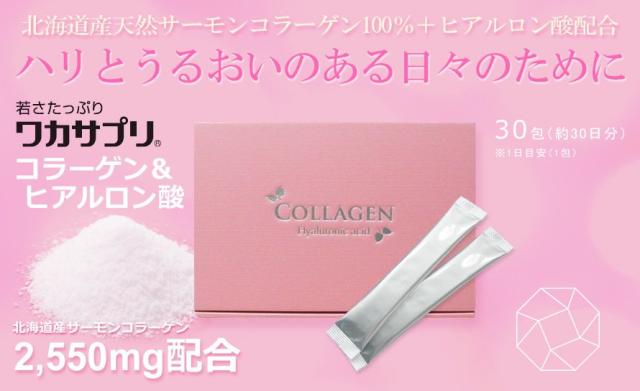 【2個セット】【ワカサプリ】 コラーゲン&ヒアルロン酸 30包 北海道産 天然サーモンコラーゲン 【送料無料】