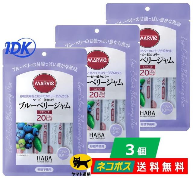 【3個セット】マービー 低カロリー ブルーベリー ジャム 13g 10本入【スティック】送料無料 HABA ハーバー 砂糖不使用 携帯 常温保存 還元麦芽糖 ネコポス ポスト投函