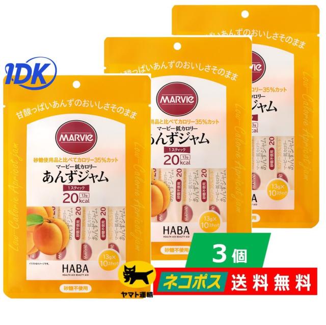 【3個セット】マービー 低カロリー あんず ジャム 13g 10本入【スティック】送料無料 HABA ハーバー 砂糖不使用 携帯 常温保存 還元麦芽糖 ネコポス ポスト投函