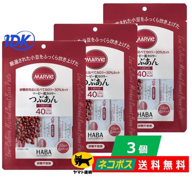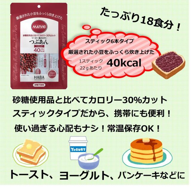 【3個セット】マービー 低カロリー つぶあん ジャム 22g 6本入【スティック】送料無料 HABA ハーバー 砂糖不使用 携帯 常温保存 還元麦芽糖 ネコポス ポスト投函