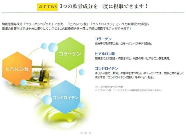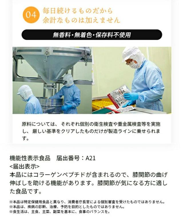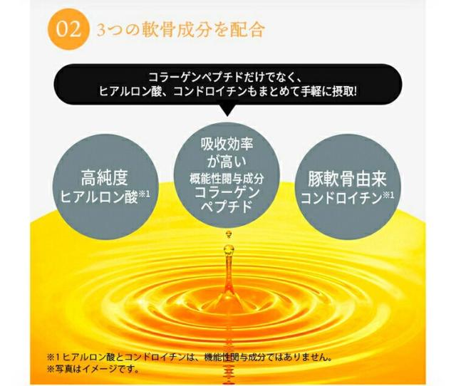 コラーゲンペプチド(ゼラチンを含む)(国内製造)、コンドロイチン硫酸含有ムコ多糖たんぱく(豚肉を含む)/ヒアルロン酸