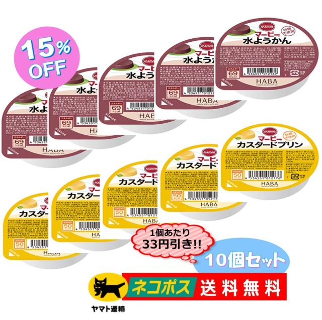 【水ようかん+カスタードプリン】 マービー 【2種10個セット】 砂糖不使用 HABA ハーバ ー 低カロリー甘味料 ダイエット デザート 還元麦芽糖 【送料無料】