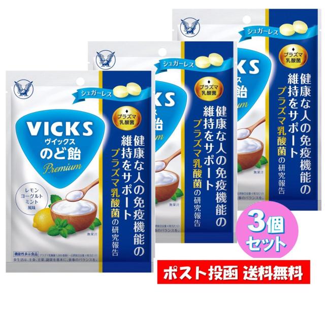【3個セット】 ヴィックス のど飴 Premium プラズマ乳酸菌 シュガーレス 39g VICKS プレミアム 個包装 レモンヨーグルト ミント風味 大正製薬 ビックス 機能性表示食品 【 送料無料】