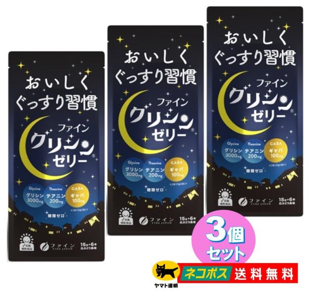 【3個セット】 ファイン グリシンゼリー 15g×6包 GABA ギャバ ノンカフェイン 糖質ゼロ 睡眠 快眠 テアニン 睡眠の質 睡眠障害 ポスト投函 【送料無料】