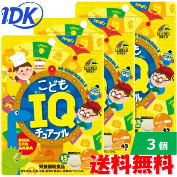 3個セット こども IQチュアブル 45粒 DHA EPA GABA 栄養補助食品 オレンジ風味 かんで食べる 勉強 受験 頑張るお子様の応援サプリ 受験生 学ぶ力やリラックスをサポート 美味しい キッズ サプリメント ポスト投函 送料無料 ユニマットリケン