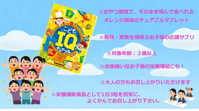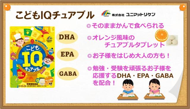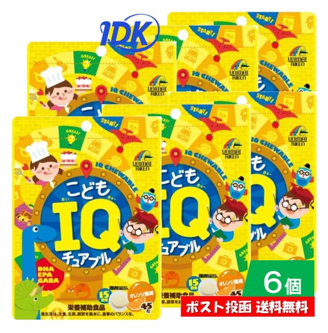 6個セット こどもIQチュアブル 45粒 DHA EPA GABA 栄養補助食品 オレンジ風味 かんで食べる 勉強 受験 頑張るお子様の応援サプリ 受験生 学ぶ力やリラックスをサポート 美味しいサプリメント ポスト投函 送料無料 ユニマットリケン