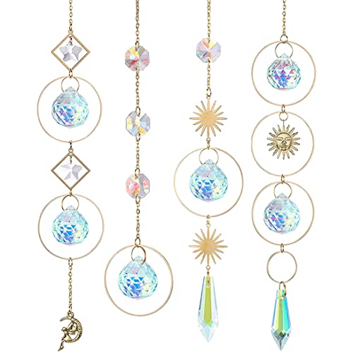 ・?セット内容:セットには異なる様式のサンキャッチャークリスタルペンダントが4つ含まれます。直径は40cmで、素晴らしい輝き、美しく輝くデザインです、あなたの家を暖かく飾ります、良い装飾的な効果を持っています。それを見て、気持ちも良くになります。また、季節を問わず、一年中も使えます。