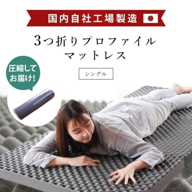 [ keyword | マットレス シングル 三つ折り 高反発 日本製 自社製造【当社限定】国産 3つ折り 全面140N 敷布団 硬め プロファイル メッシュ 通気性 車中泊 敷き布団 腰痛 ウレタン 洗える 8cm ]