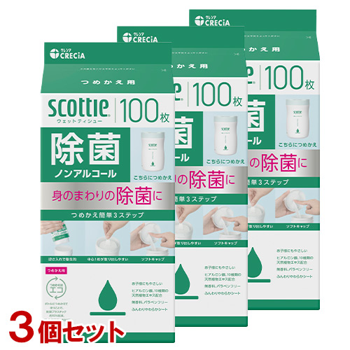 ウェットティッシュ スコッティ ウェットティシュー 除菌 ノンアルコール 詰替用100枚×3個セット scottie 日本製紙クレシア(Crecia)【送料込(北海道除く)】