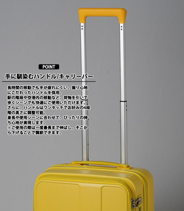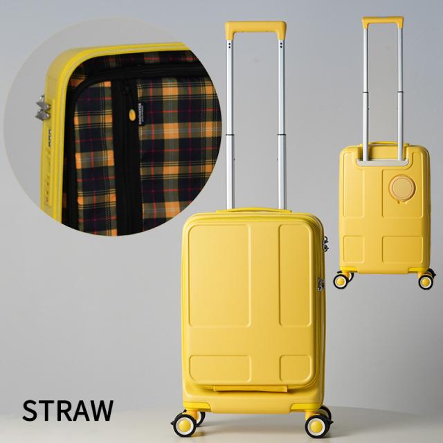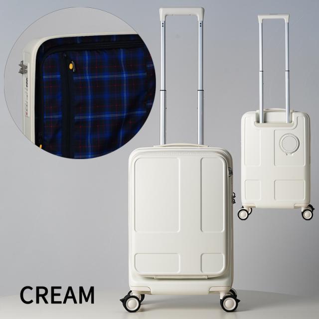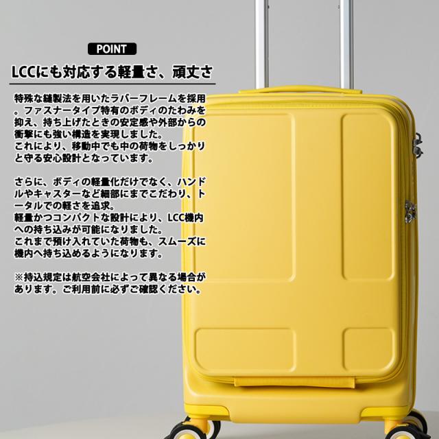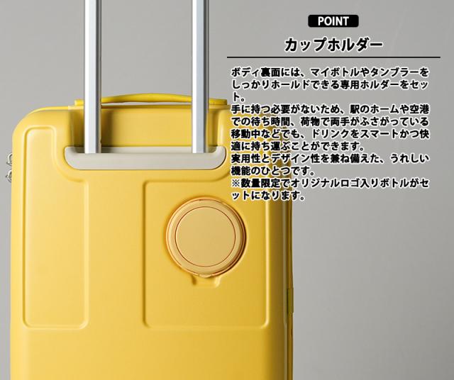 便利なカップホルダーを搭載し、移動中のドリンクも安心して持ち運べる新発想の旅行キャリーです。フロントオープン構造でノートPCや小物にすぐアクセスでき、出張や短期旅行に最適。軽量2.9kgながら堅牢なポリカーボネート製ボディを採用し、大切な荷物をしっかり守ります。