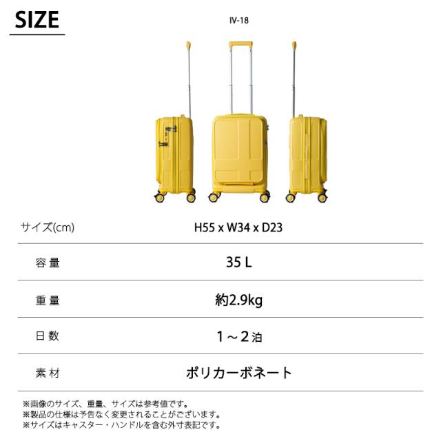 LCC 機内持ち込み可 イノベーター スーツケース IV-18 Sサイズ 35L 1泊 2泊 フロントオープン ドリンクホルダー 静音 ストッパー 軽量 TSAロック キャリーケース innovator
