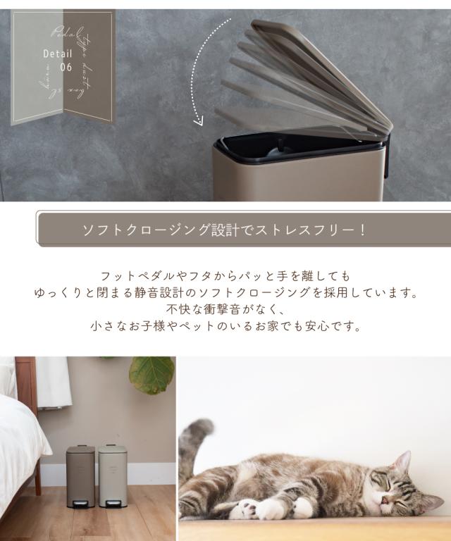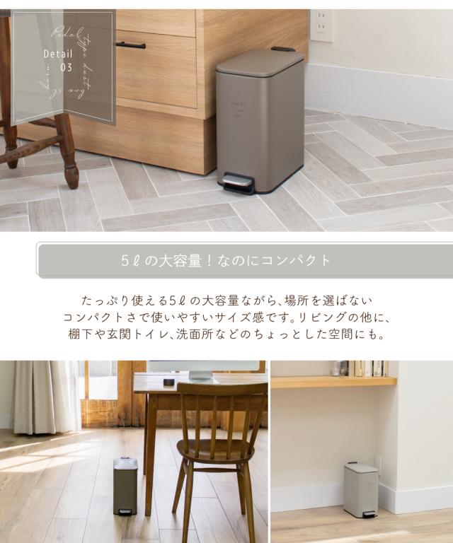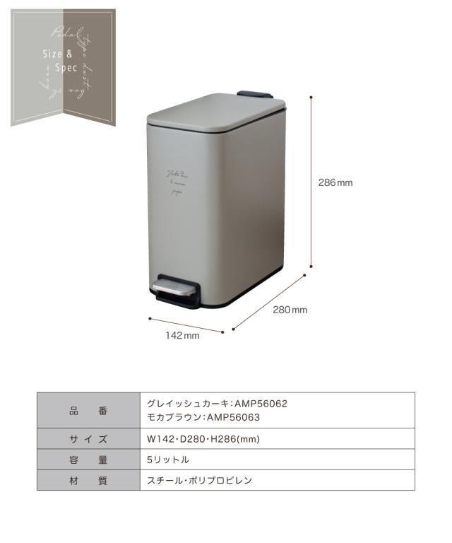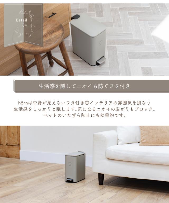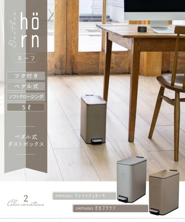 【Ampoule】 ゴミ箱 ダストボックス おしゃれ 5リットル リビング ダイニング 寝室 キッチン 北欧 カフェ ナチュラル ポップ カジュアル ふた付き ペダル式 ソフトクロージング 静音 カーキ グレー ブラウン モカ インテリア コンパクト スリム 角型 スクエア ho?rn ホーン