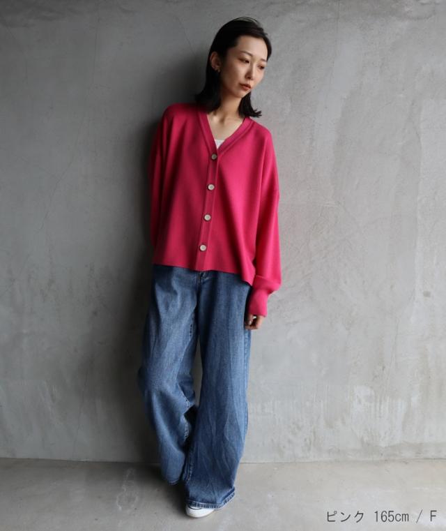 nacnarumade ニット Vネック カーディガン ウール 100% 秋冬 冬 秋 日本製 レディース 長袖 薄手 サイドスリット 五泉ニット ウール100%スムースVネックカーディガン