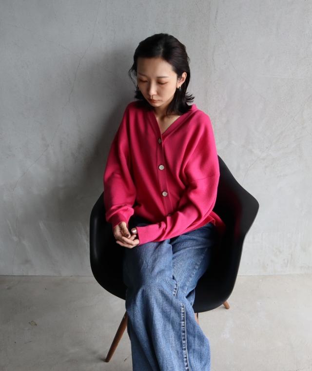 14ゲージのスムース編み。薄手で上品な表面感が特徴です。