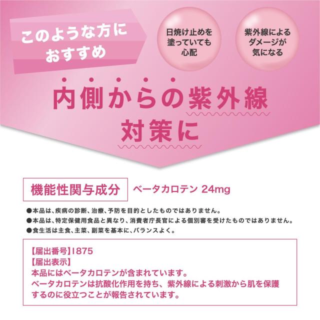 日焼け止め 対策 サプリ 飲む 太陽対策 紫外線 防止 β-カロテン 日焼け サプリメント 機能性表示食品