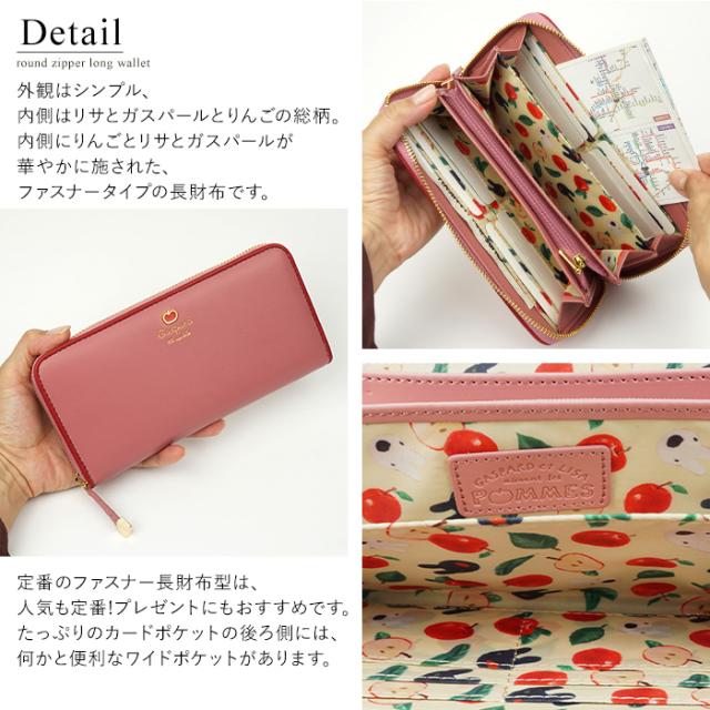 リサとガスパール 財布 レディース 長財布 ラウンドファスナー財布 キャラクター りんご柄 総柄 シンプル 大人 かわいい おしゃれ サイフ ジッパー プレゼント ギフト 1年保証 送料無料