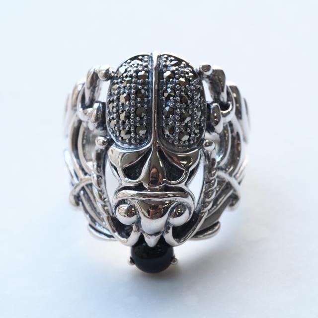ROKUZAN オニキス スカラベ リング 指輪 11〜17号 シルバー925 マーカサイト 碌山ジュエリー ブランド レディース 女性 彼女 娘 妻 誕生日 記念日