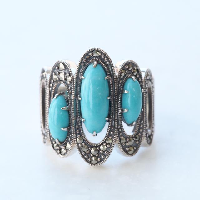 シルバー925、ターコイズ、マーカサイト