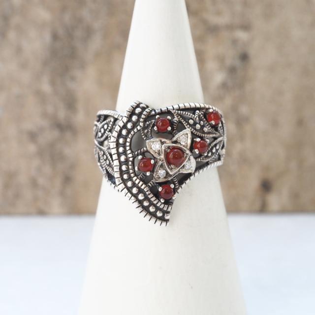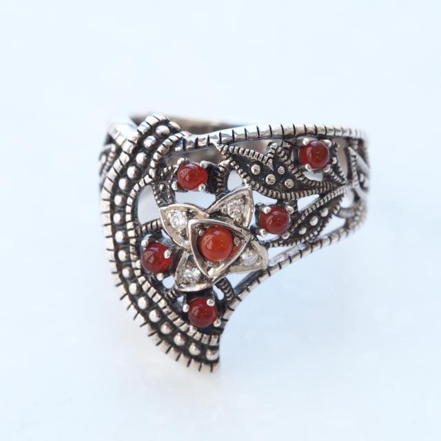 ROKUZAN ダイヤモンド カーネリアン リボン リング 指輪 11〜17号 シルバー925 ダイヤモンド カーネリアン マーカサイト 碌山ジュエリー ブランド