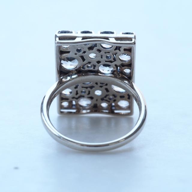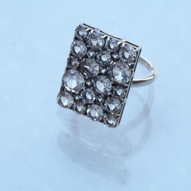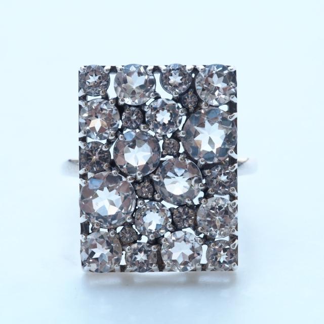 さまざまな大きさのラウンドカットのホワイトトパーズを面いっぱいに閉じ込めました。