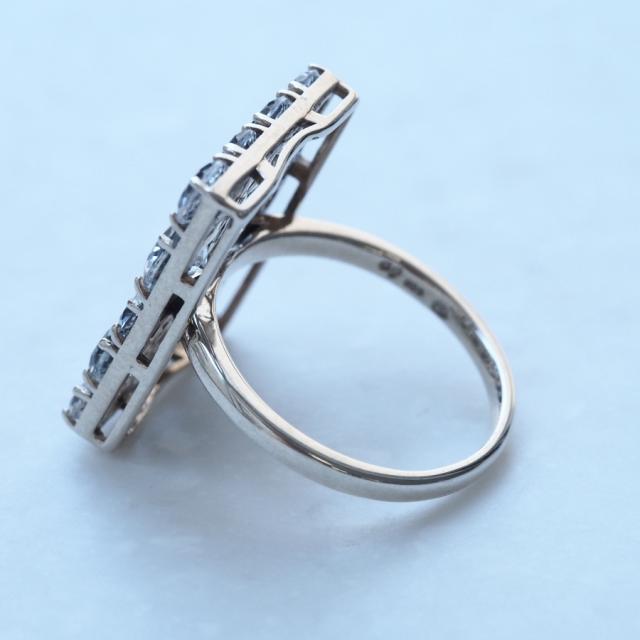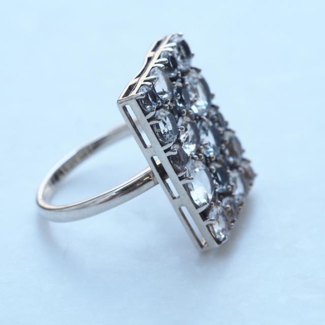 計算された配置で敷き詰められたホワイトトパーズは全てに光穴がありますので、お手元できらきらと水面のように輝きます。