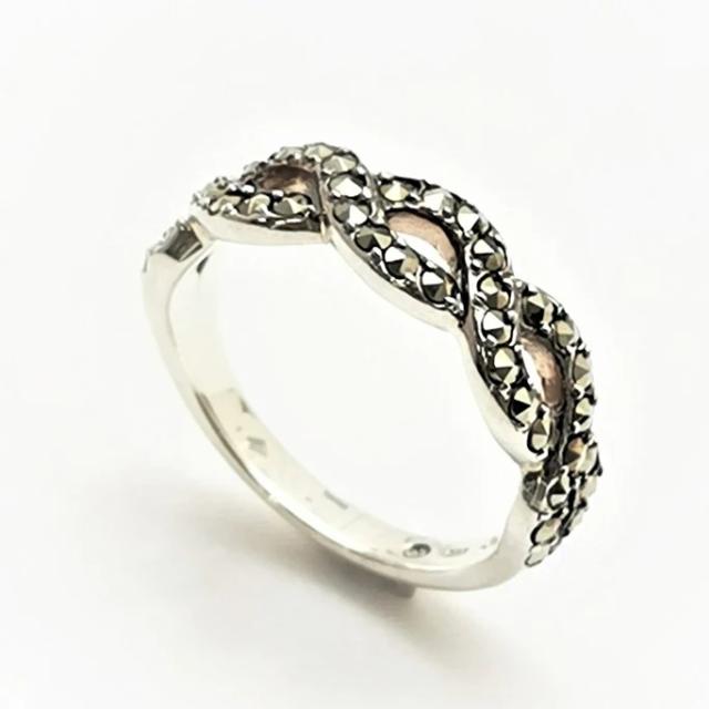 ヨーロッパをイメージさせるロープの模様にマルカジットをびっしりとセッティングした一文字風のリング。