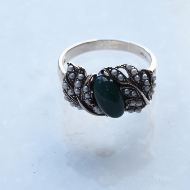 シルバー925、グリーンアゲート、パール(真珠)
