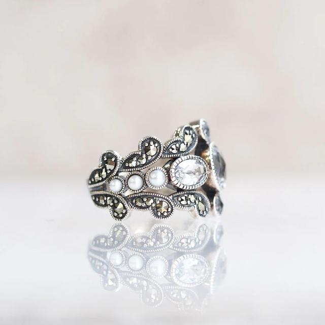 ROKUZAN クォーツ シードパール ロマンティック リング 指輪 11〜17号 シルバー925 マーカサイト パール 真珠 碌山ジュエリー ブランド レディース