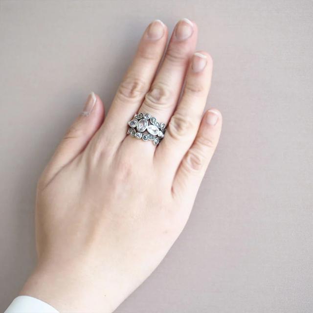 モノトーンに近い色合いはシックでモダンな雰囲気を演出しており、大人の女性の指元を一層洗練された印象に見せてくれるリングですよ♪