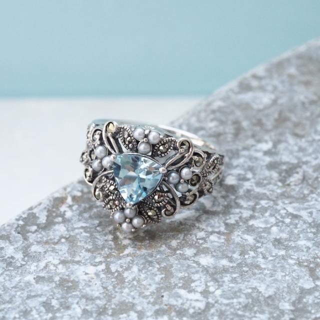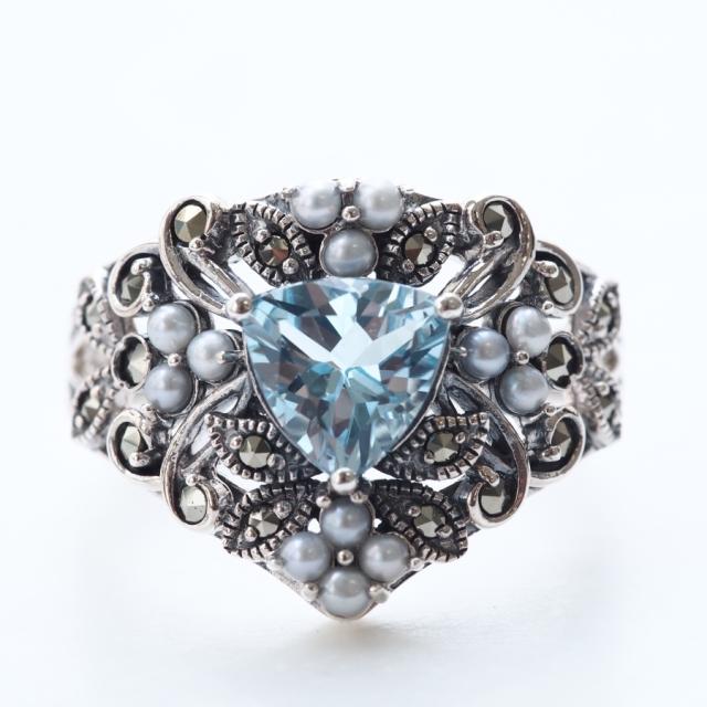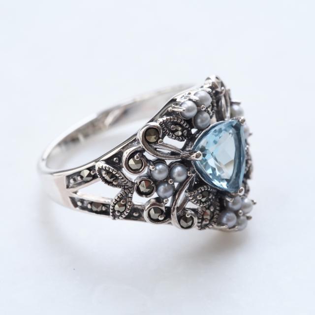 シルバー925、ブルートパーズ、パール(真珠)、マーカサイト